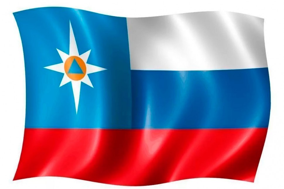 Представительский флаг Министерства Российской Федерации по делам гражданской обороны, чрезвычайным ситуациям и ликвидации последствий стихийных бедствий «МЧС России» представляет собой полотнище цветов флага Российской Федерации. В левом верхнем углу полотнища расположен голубой квадрат с малой эмблемой МЧС России. Флаг изготовлен из полиэфирного шелка и устойчив к внешним воздействиям. Размер 90х135см, односторонний.